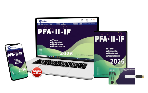 Comanda acum PFA/II/IF: Taxe, impozite, deduceri, contributii 2026 conform modificarilor Codului Fiscal! Afla TOATE metodele prin care poti pastra in buzunar cat mai multi bani! Invata sa profiti de fiecare virgula din textul legii! Cel mai iscusit consultant in afaceri iti salveaza acum afacerea!